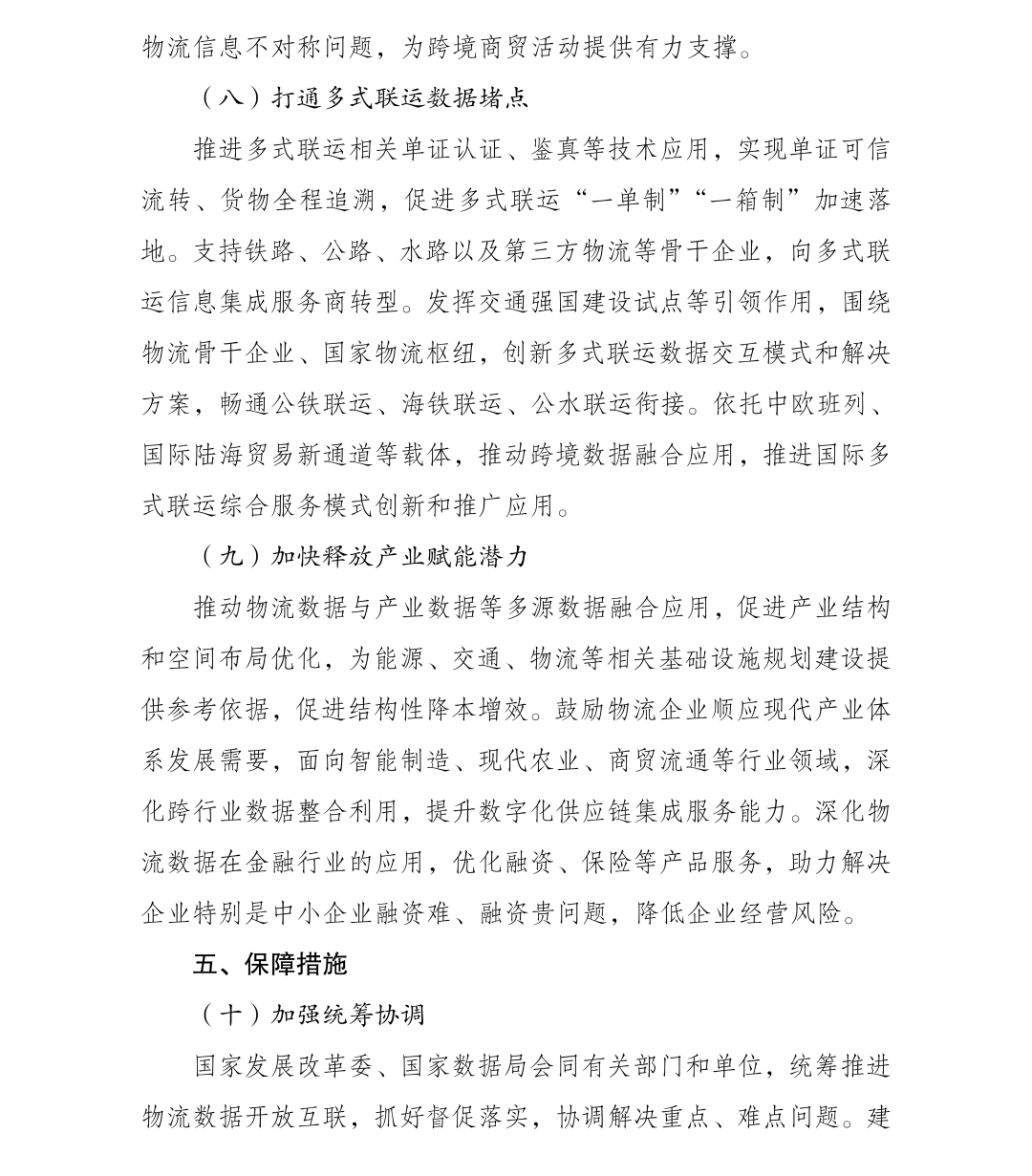 国家发展改革委等部门关于印发《关于推动物流数据开放互联 有效降低全社会物流成本的实施方案》的通知